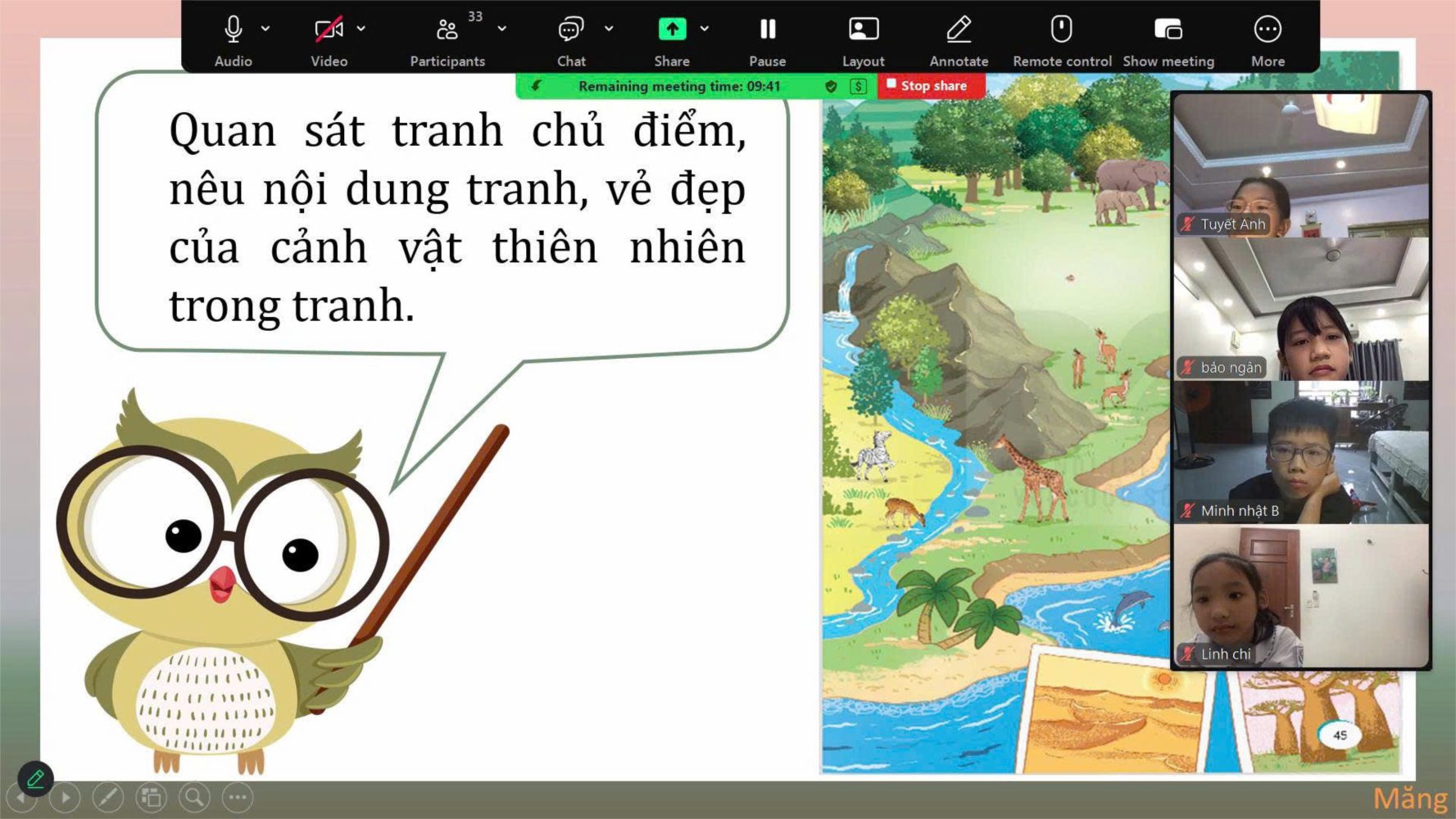 Nhờ kinh nghiệm từ những năm trước cùng sự chuẩn bị kĩ lưỡng, việc chuyển đổi từ lớp học trực tiếp sang trực tuyến diễn ra tương đối suôn sẻ. Các thầy cô nhanh chóng bắt nhịp, ứng dụng linh hoạt các công cụ dạy học trực tuyến như Zoom, Google Meet,… giúp bài giảng sinh động, hấp dẫn và gần gũi hơn với học sinh tiểu học. Nhờ sự chủ động từ cả giáo viên và phụ huynh, việc chuyển đổi từ lớp học truyền thống sang trực tuyến diễn ra nhịp nhàng, không hề bị động hay lúng túng.